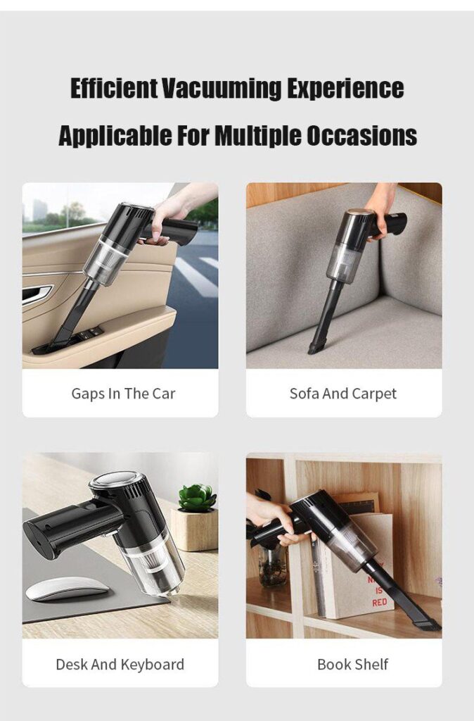 This car vacuum cleaner is possibly the smallest of all cordless vacuum cleaners, with a suction force of over 6000Pa.